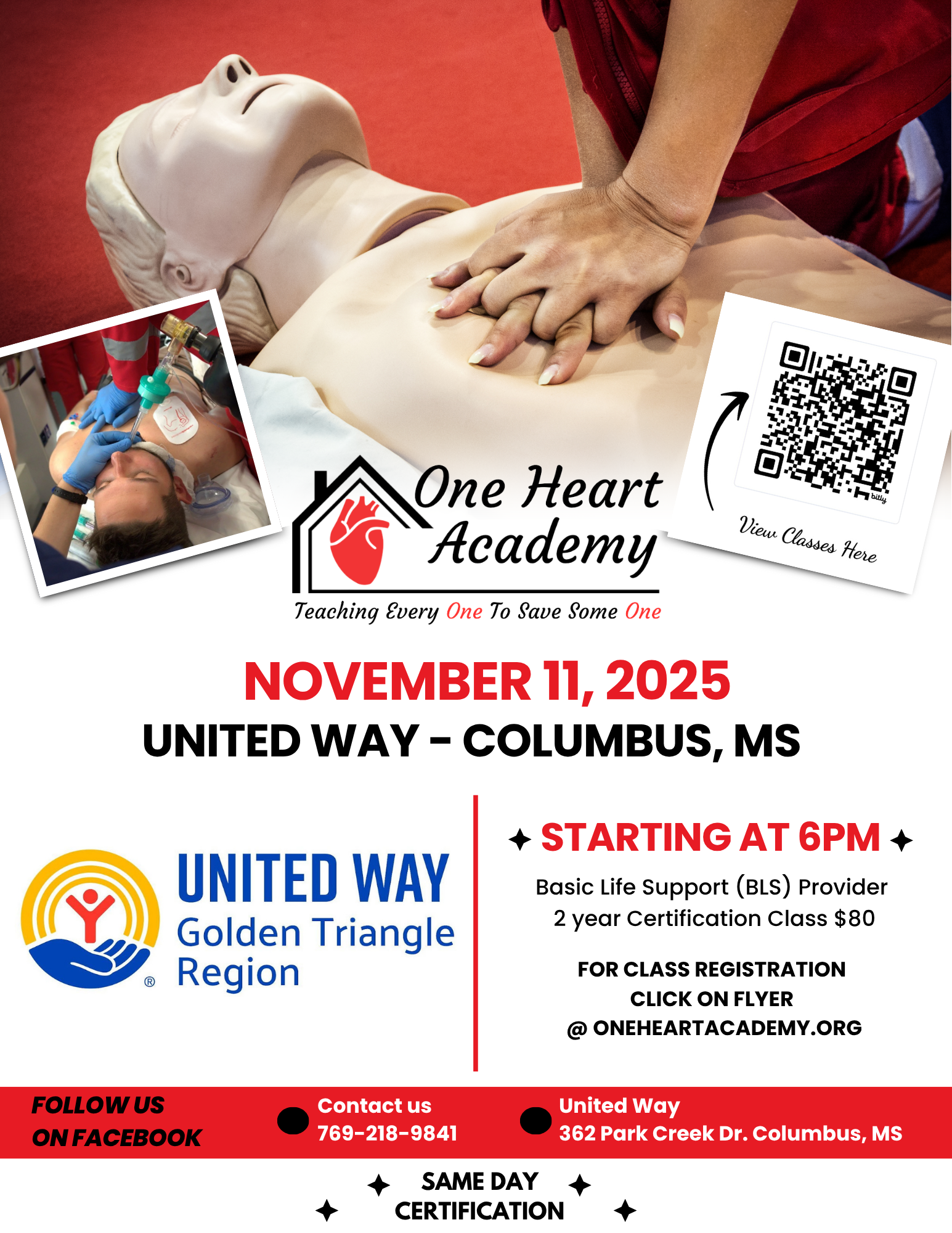 The Basic Life Support (BLS) CPR class is designed to equip participants with essential skills in cardiopulmonary resuscitation, automated external defibrillator (AED), choking and emergency response techniques.